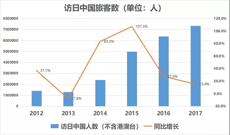 “日本制造”就像一個(gè)中檔品牌,給追求更好生活的中國(guó)中產(chǎn)們精細(xì)、質(zhì)量好的感覺(jué),從而帶動(dòng)了日本的制造業(yè)。2017年,日本約2900萬(wàn)海外游客中近一半來(lái)自內(nèi)地、香港和臺(tái)灣,他們的花銷400億美元,在日本海外游客總支出中占了近60%。