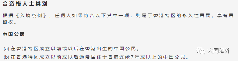 2.入境處對(duì)于永居的申請(qǐng)資格截圖: