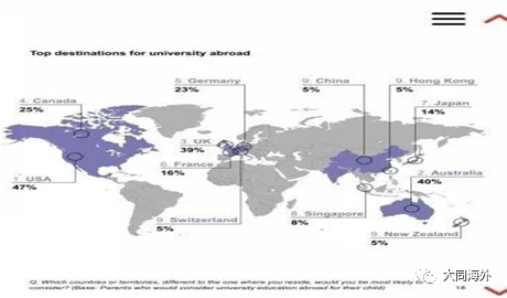 大部分中國(guó)家長(zhǎng)以英美澳加為主要留學(xué)目的地。